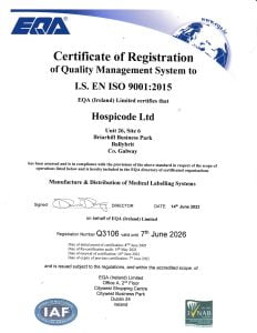 Hospicode is the Industry leader in the Healthcare Labelling sector. We take our industry and peer accreditation very seriously, and as such, we meet the latest ISO Certification.